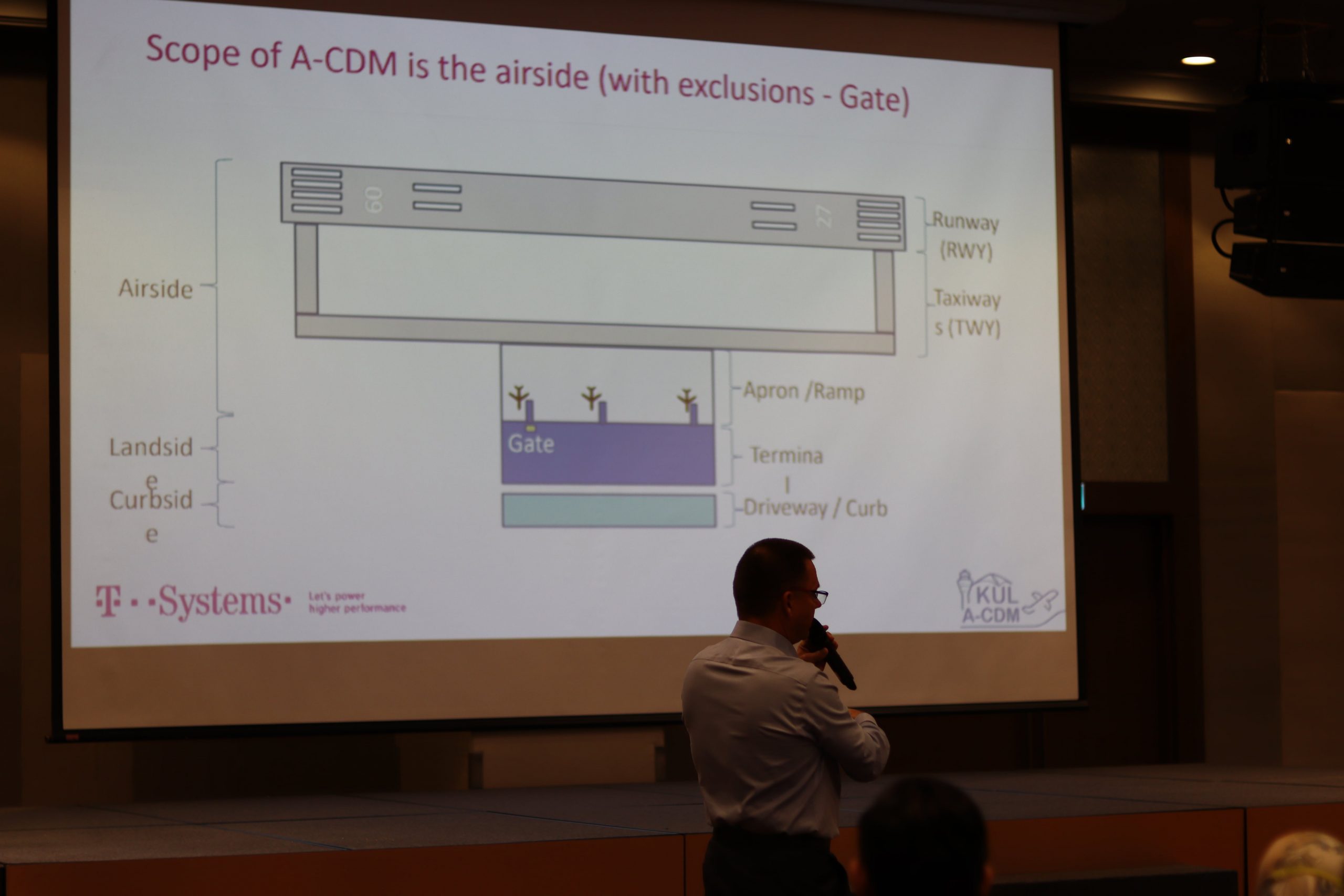 After a brief and inspirational introduction by Elmy Fairuz Azmi, the facilitator and trainer of the day, the session was handed over to Mr Michael Mowinksi, the KUL A-CDM project’s Process and Procedure Development Lead, to provide an in-depth introduction to A-CDM.